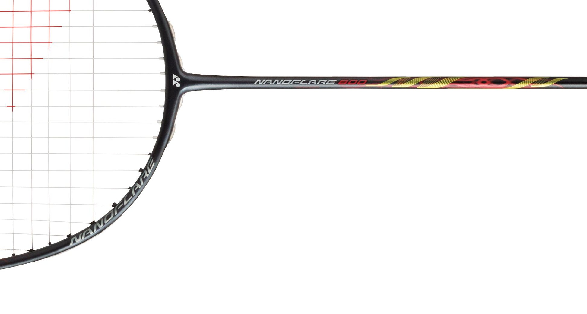 The main new feature of the NANOFLARE 800 (NF800) is the ultra-thin Razor Frame, which is aerodynamic from all angles. Compared with other thin frames, the 360 degrees streamlined Razor Frame means air resistance is reduced by up to 11.5% from all angles, resulting in a faster swing speed. This also means that shuttle speeds off the racket have increased. Overall, because of the quicker speeds, the player can reach the shuttle earlier, improving their ability to pressure opponents with aggressive drives and pushes.